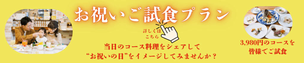 上記のお祝いご試食プランをご確認ください。